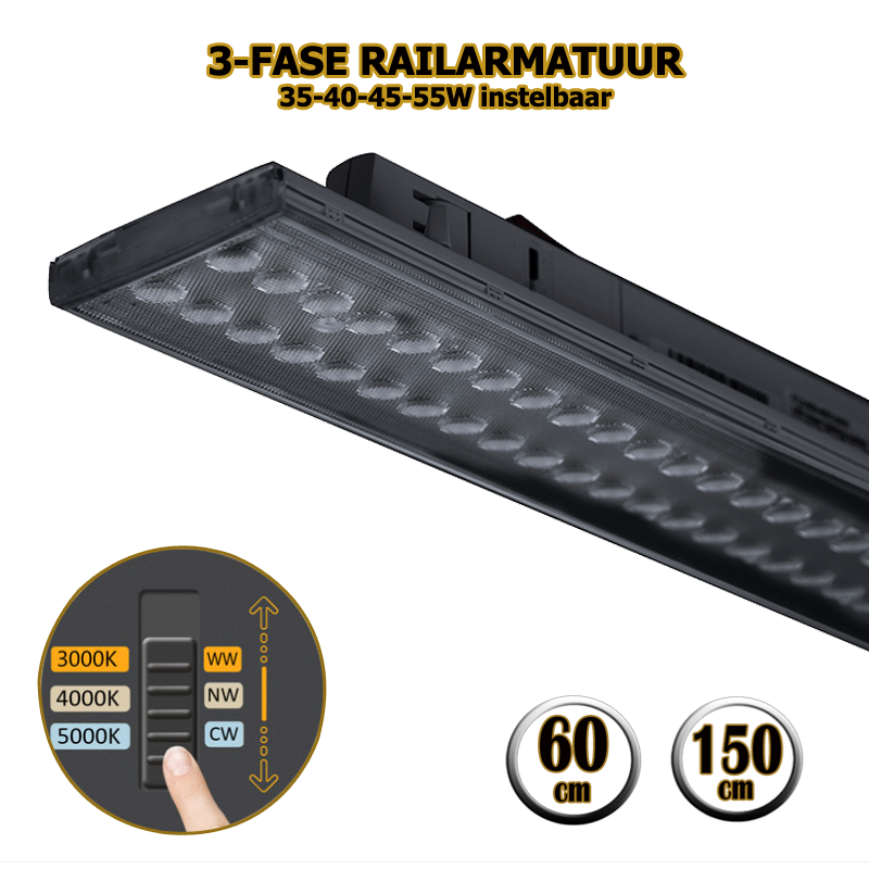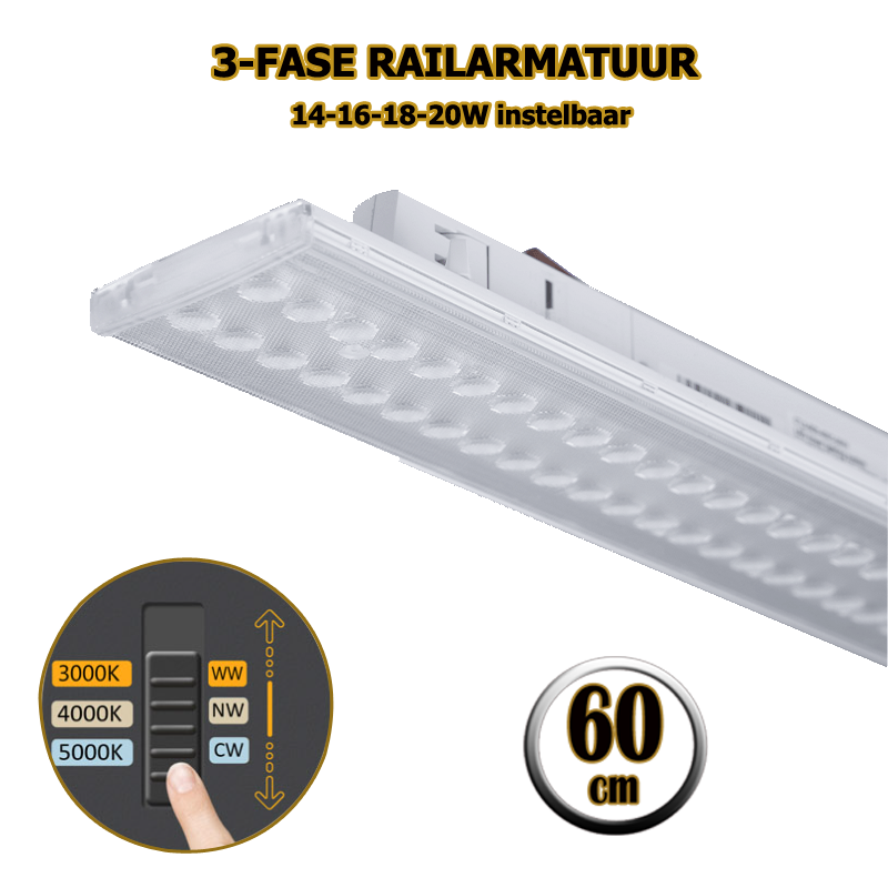 3-FASE RAILARMATUUR | TARVOS | 60CM | wit  | CCT SWITCH