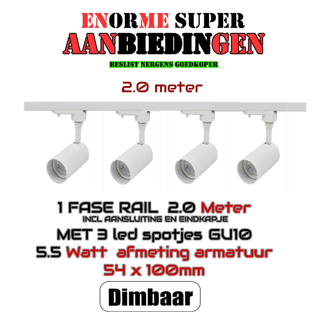 AANBIEDING COMPLETE SET-2.0 METER 1 FASE RAIL MET 4 SPOTS