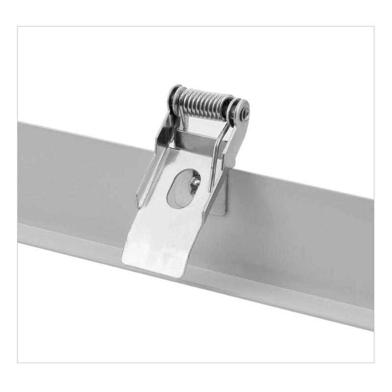 Het inbouwframe wordt kant-en-klaar geleverd, wat betekent dat u meteen kunt beginnen met installeren. U hoeft zich geen zorgen te maken over het zoeken naar losse onderdelen of ingewikkelde instructies. Bij elk frame ontvangt u veerklemmen, waarmee u uw LED panelen snel en eenvoudig kunt bevestigen. Deze klemmen zorgen ervoor dat het paneel stevig blijft zitten, wat de veiligheid en duurzaamheid van uw verlichting garandeert.