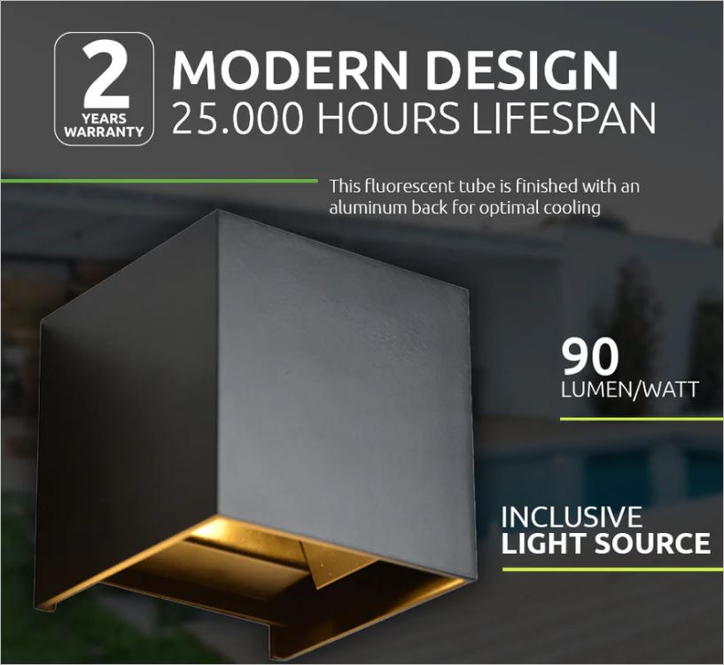 De LED Cube Thebe is een moderne en functionele wand armatuur, ontworpen voor duurzame en sfeervolle buitenverlichting. Met zijn minimalistische kubusvorm, hoogwaardige aluminium behuizing en krachtige lichtprestaties biedt deze LED cube de perfecte combinatie van design en functionaliteit. De instelbare lichtbundel (0°–120°) en de mogelijkheid om de kleurtemperatuur aan te passen maken deze armatuur bijzonder veelzijdig voor gevels, entrees, tuinen en terrassen.