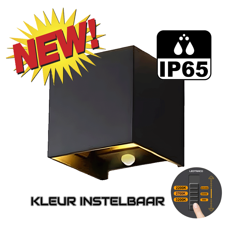 De LED Cube Thebe is uitgerust met een CCT-schakelaar, waarmee u de lichtkleur kunt instellen op 2200K, 2700K of 3200K. Of u nu kiest voor warm sfeervol licht of een iets neutralere toon, deze wandlamp past zich aan uw omgeving aan. De lichtopbrengst van 350 lumen (2x 3 Watt) zorgt voor voldoende verlichting zonder te verblinden. Daarnaast is de armatuur Triac dimbaar, zodat u de lichtintensiteit naar wens kunt regelen. Ideaal voor het creëren van de juiste ambiance rondom uw woning of pand.