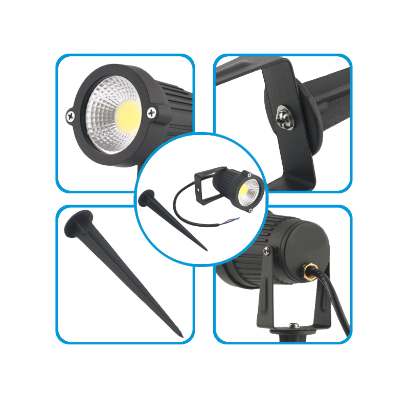 Waterdichte Robuuste Aluminium 5W LED tuinspot op spies - 230V. incl.2 meter snoer