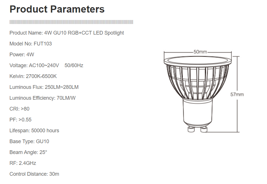 Bij aankoop van dit artikel ontvangt u: - WiFi LED spot GU10 RGB+CCT