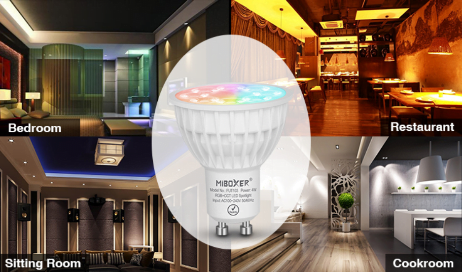 U kunt oneindig veel GU10-spots in vier groepen van allemaal samen bedienen met één afstandsbediening van Wi-Fi Box.