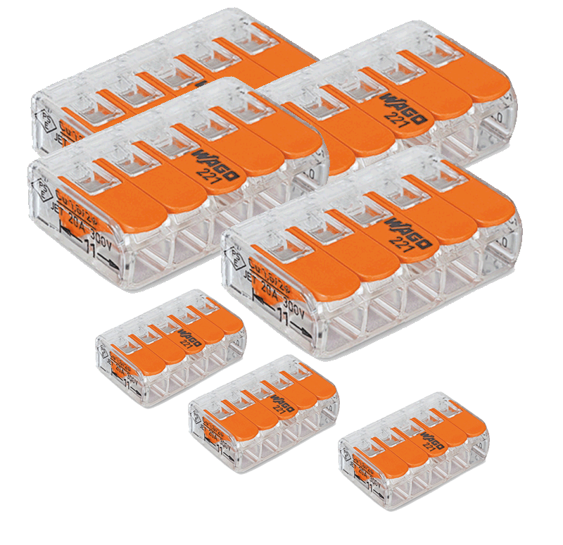 40% minder: de nieuwe 221 serie 221 nieuwe Terminal-reeks geeft een snellere, eenvoudigere Wago elektriciens en veilige installatie van alle soorten draad: een-, fijn- of gestrande. Ter vergelijking: de Terminal aanzienlijk verminderd afmetingen 40% minder ruimte nodig zijn bewezen voorganger (serie 222).Dus, zelfs in de kleinste en ontoegankelijk installatie kamers verbindingen zijn mogelijk.Serie van 221 voor gebruik in 230V/400V-Netzen is geschikt met een maximum nominale stroom van 32 A en een nominale spanning van 450 V.